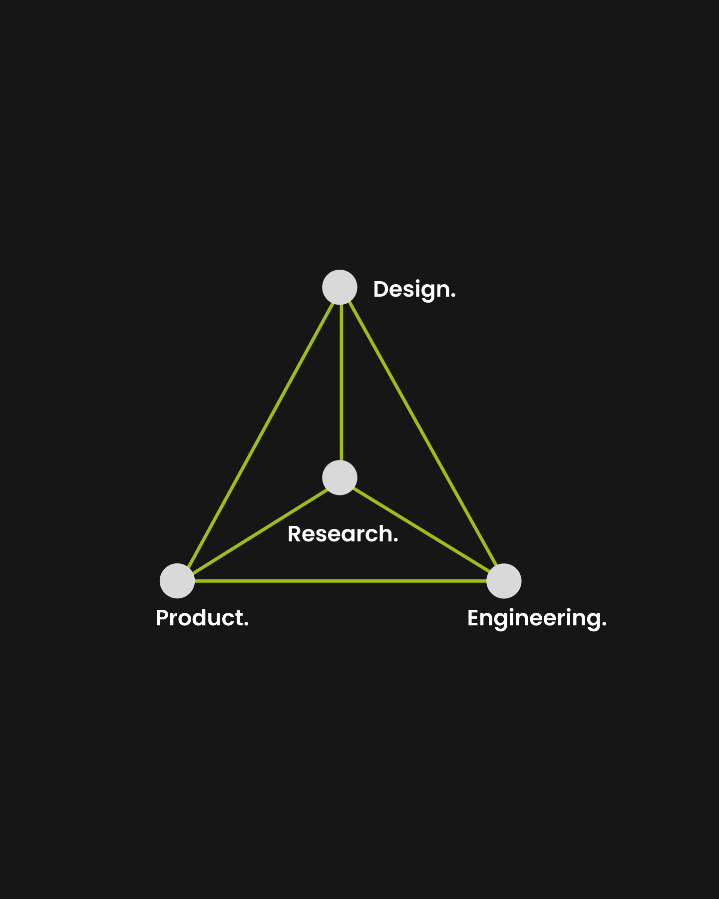 Product-Design-Engineering triangulation reveals new technical approaches to user problems. Design-Research-Engineering triangulation uncovers implementation opportunities that traditional user research wouldn’t catch. Product-Research-Engineering identifies market opportunities that require technical innovation.